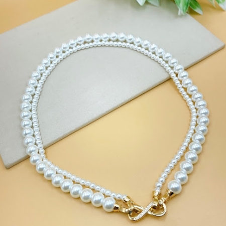 • COLAR DUPLO DE PEROLA INFINITO CRAVEJADO