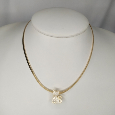 • COLAR FITA I LOVE YOU C/ PINGENTE GATO CRAVEJADO