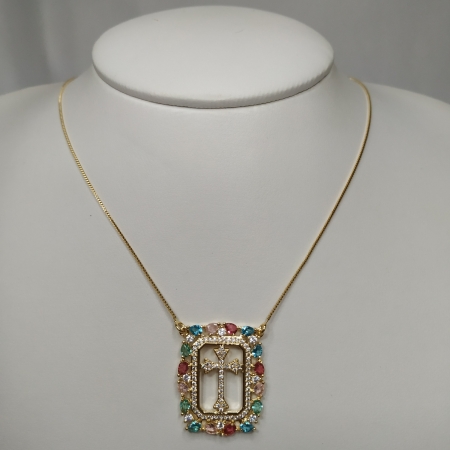 • COLAR VENEZIANA C/ PING MANDALA E CRUZ