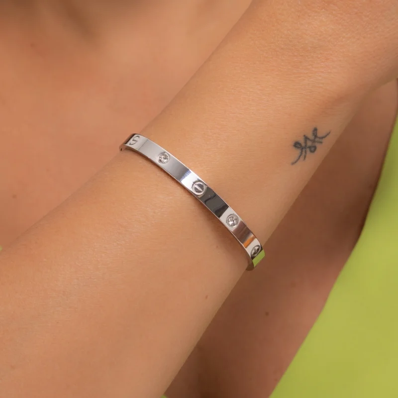 BRACELETE INSPIRAÇÃO COM ZIRCÔNIA AÇO INOX PRATA