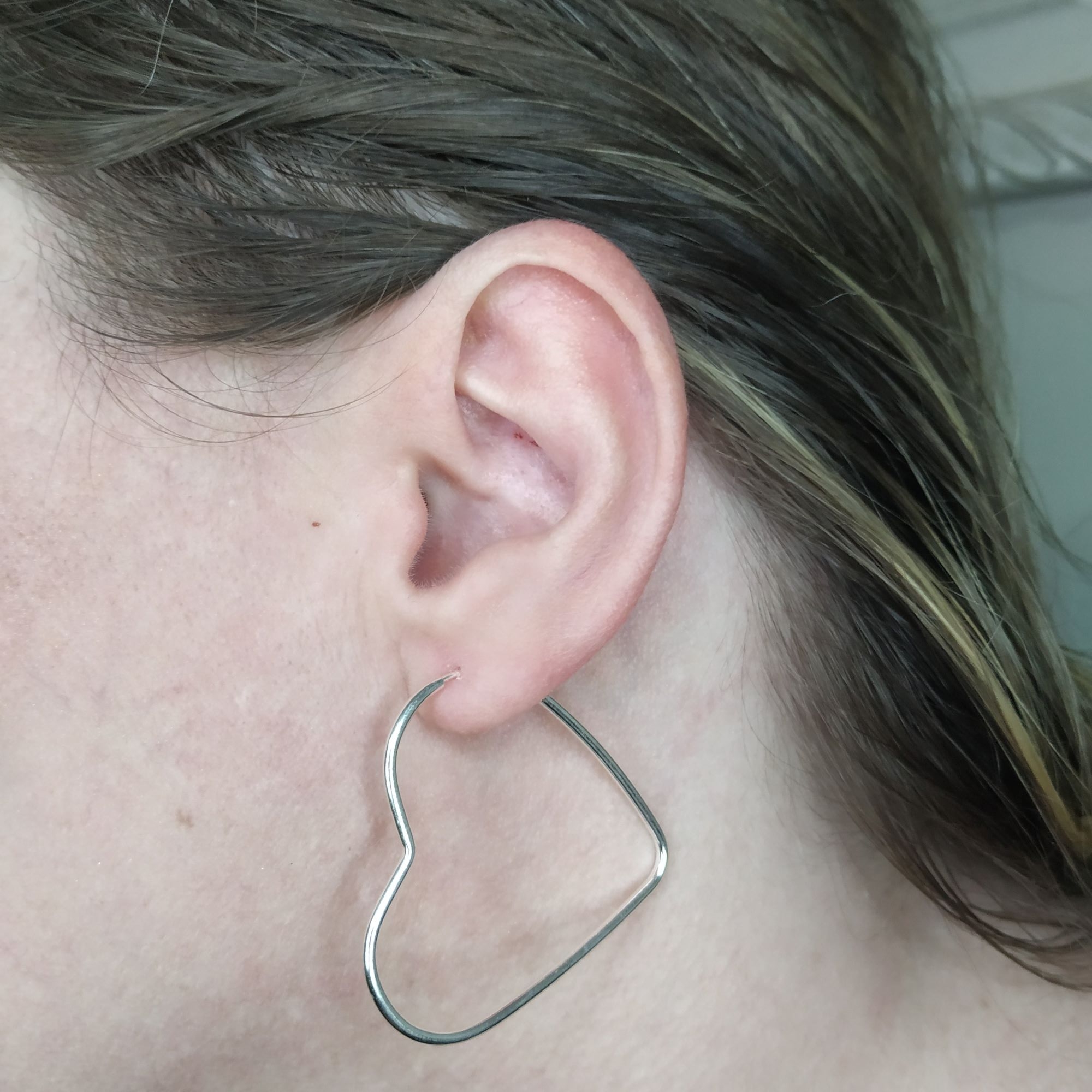 BRINCO PRATEADO LISO FIO REDONDO ARGOLA CORACAO 40MM