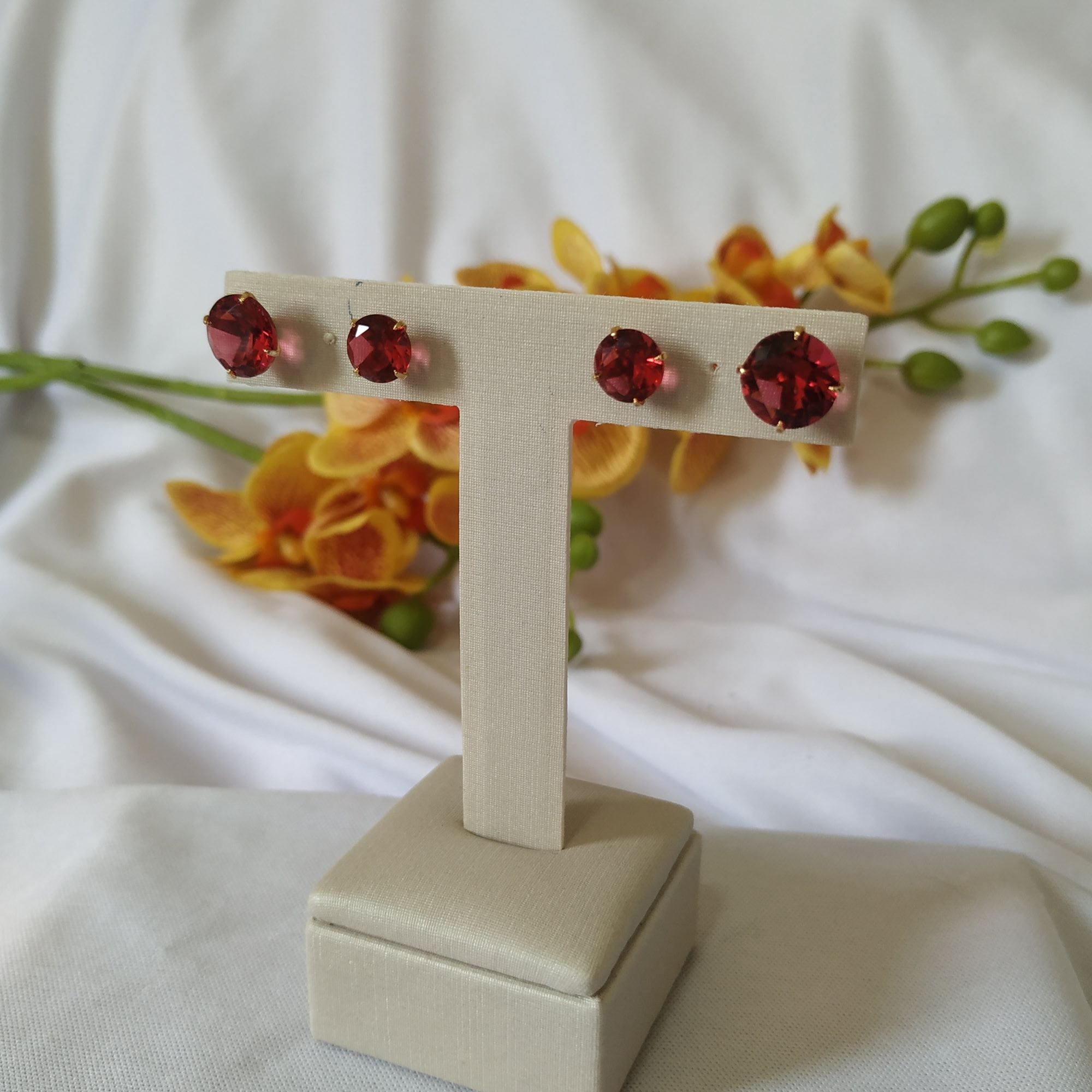DUO BRINCO CRAVEJADO ZIRCONIA VERMELHA